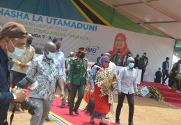 Rais wa jamhuri ya muungano wa Tanzania mh Samia suluhu Hassani (Hangaya) akitoka kwenye viwanja vya maonyesho ya Tamasha la utamaduni lililofanyika bujora wilayani magu ....